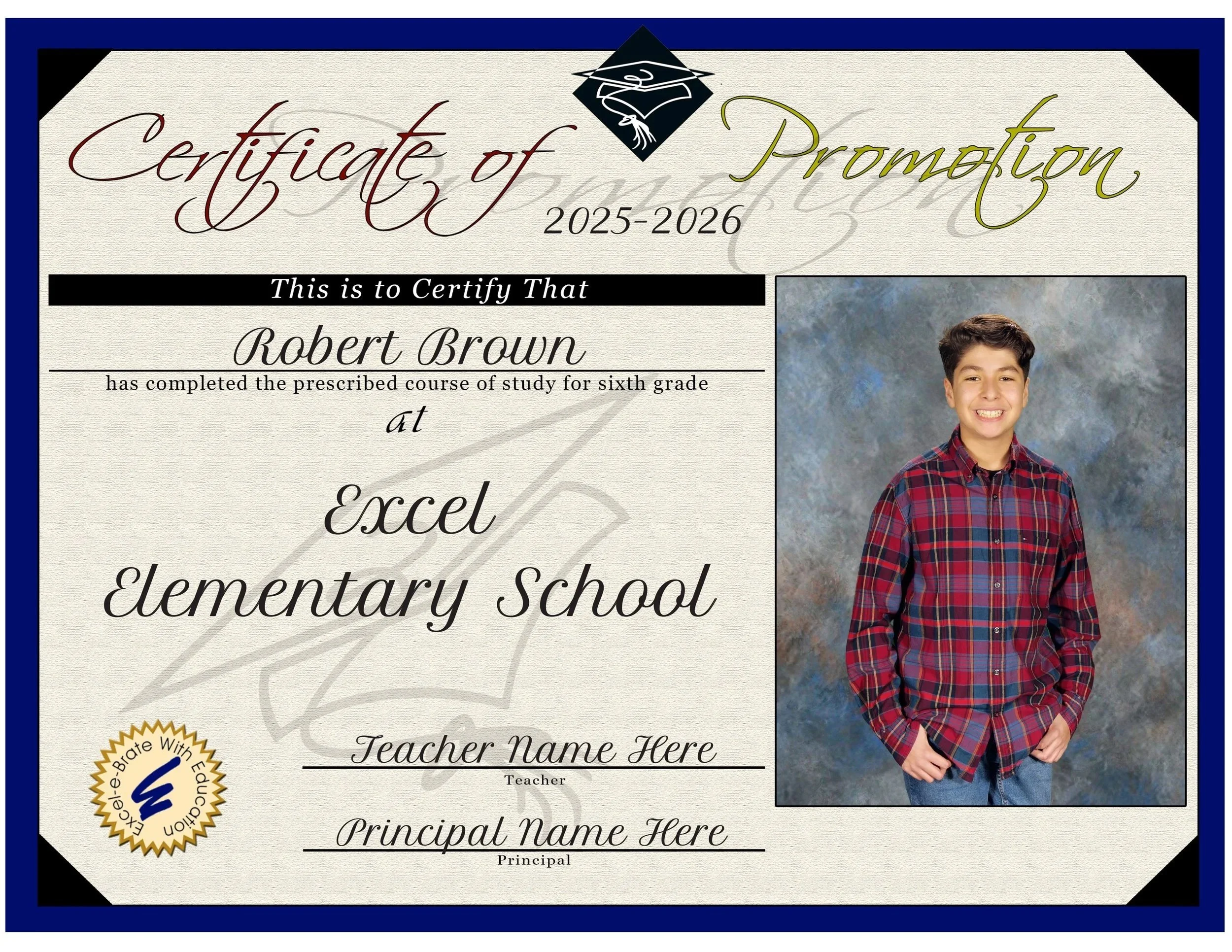 Spring pictures are used to create the Certificates. Images must be from the current school year and taken by Excel. Blank certificates with a graphic are provided for you to use for absent students. The graphic will be placed where the portrait usually appears. If you did not host a spring picture day, images from the fall may be used. If you request to use both fall and spring images, fee may incur.